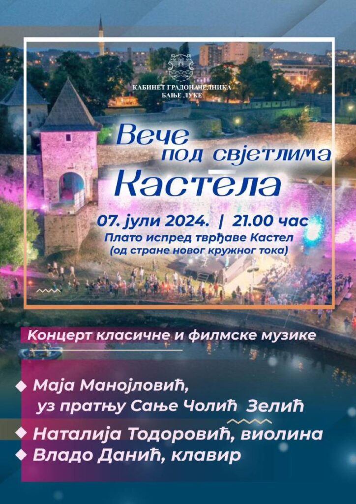 Sve prisutne sugrađane, ali i mnogobrojne turiste koji borave u našem gradu očekuje sjajan koncert klasične i filmske muzike uz nastupe Maje Manojlović uz pratnju Sanje Čolić Zelić, Natalije Todorović na violini, te pijaniste Vlade Danića.
