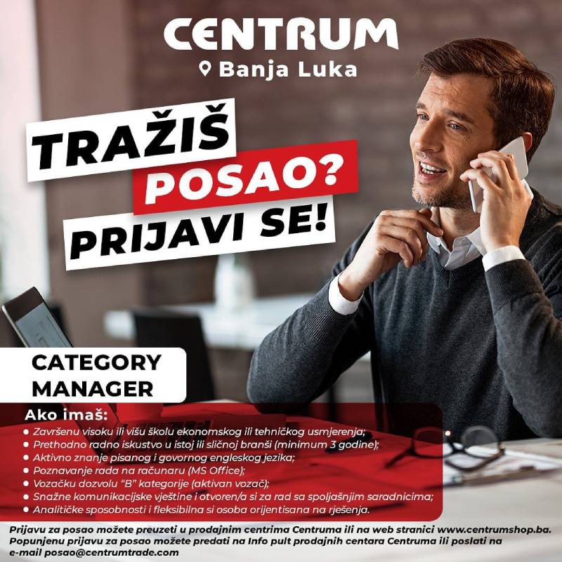 ✅Prijavu za posao možete preuzeti u prodajnim mjestima Centruma ili na web stranici: https://centrumshop.ba/