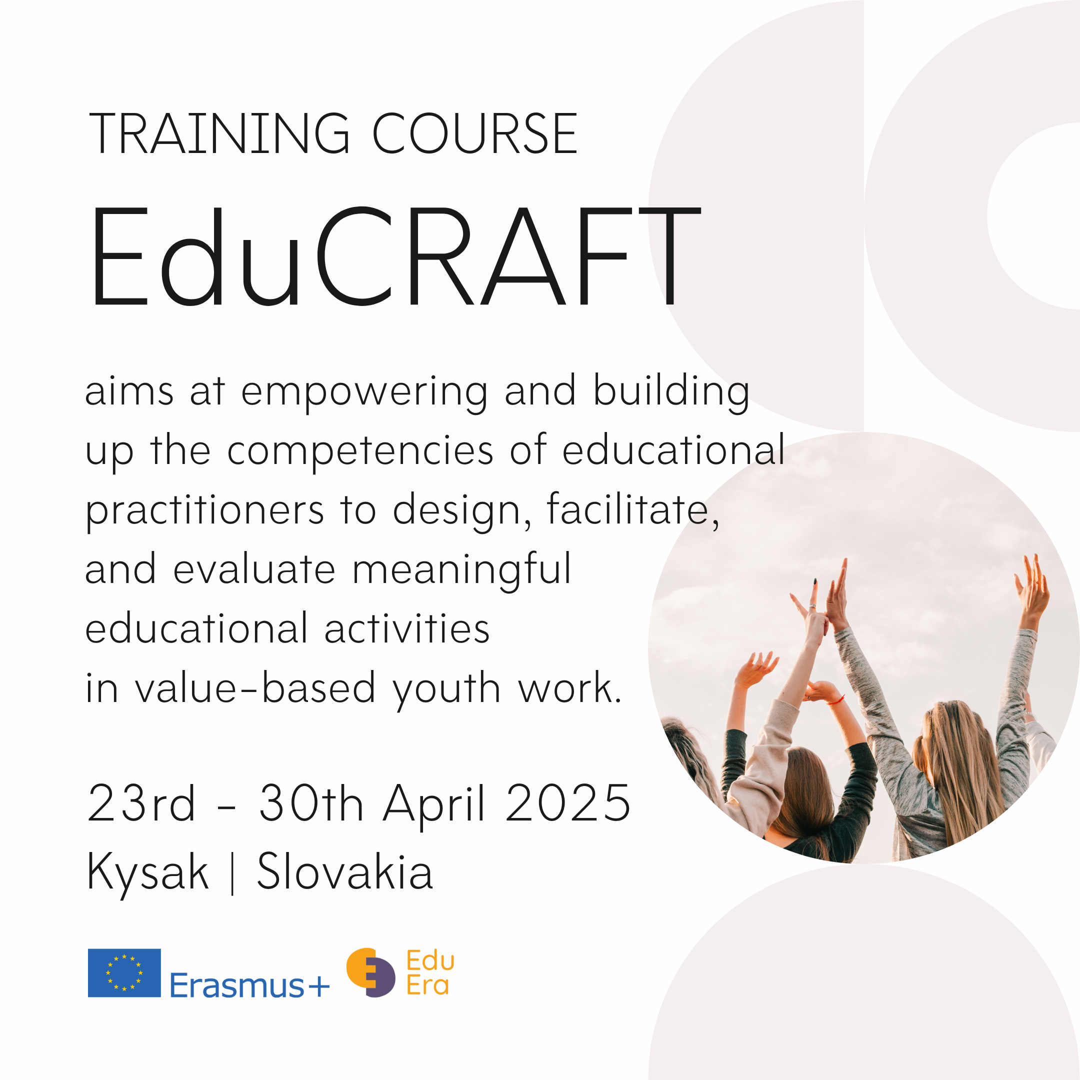 This international training course aims at empowering and building up the competencies of educational practitioners to design, facilitate, and evaluate meaningful educational activities in value-based youth work.