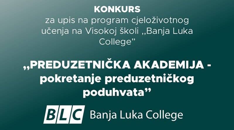 KONKURSI za upis na program cjeloživotnog učenja na Visokoj školi “Banja Luka College”. Konkursi su otvoreni 15 dana, a tačan datum izvođenja programa biće objavljen u dogovoru sa kandidatima nakon zatvaranja konkursa.