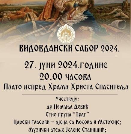 Srbsko sabranje Baštionik organizuje Vidovdanski sabor u četvrtak, 27. juna sa početkom u 20.00 časova na platou ispred Hrama Hrista Spasitelja.