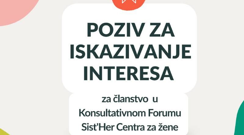 Poziv za iskazivanje interesa za člnstvo u konsultativnom forumu Sist’her Centra za žene