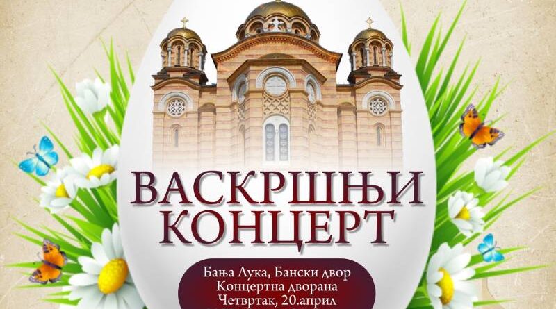 Povodom Vaskrsa, najradosnijeg hrišćanskog praznika, Srpsko pjevačko društvo Banja Luka organizuje Vaskršnji koncert u četvrtak, 20. aprila sa početkom u 20.00 časova u Kulturnom centru Banski dvor.