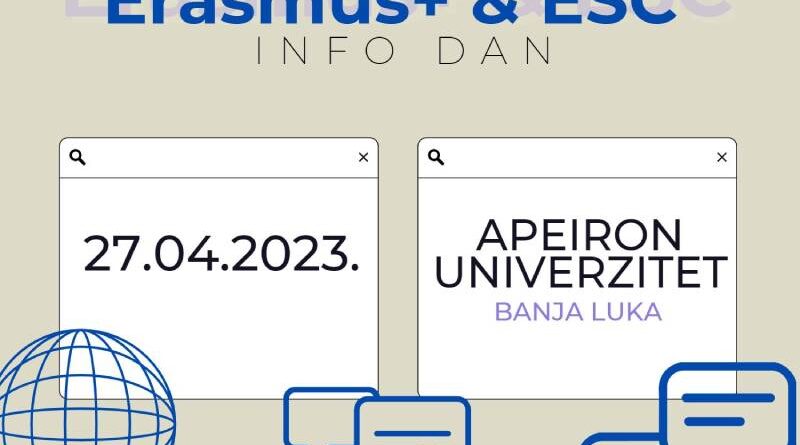 Erasmus+ & ESC Info Dan organizovan od strane BRAVO-a će se održati na Apeiron Univerzitetu u Banjoj Luci 27. aprila.