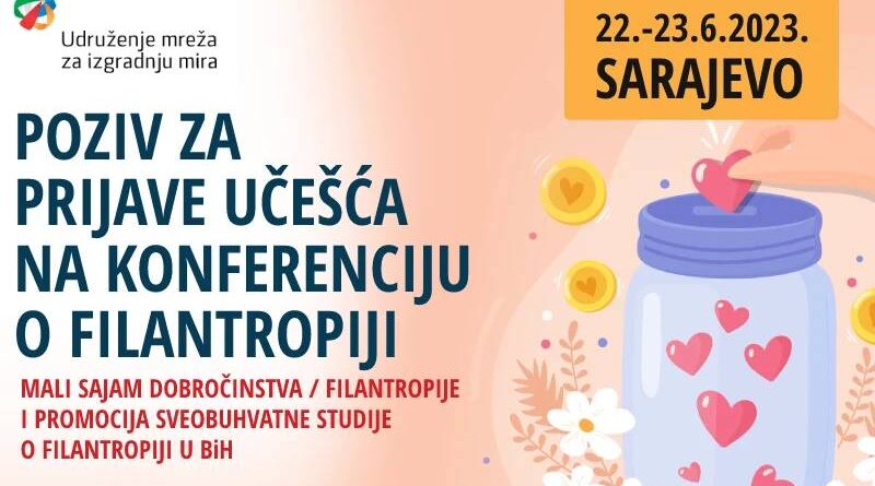 Mali sajam filantropije – dobročinstva, jedan je od dva događaja u okviru Konferencije o filantropiji u BiH i održat će se u poslijepodnevnim satima, 22.6.2023. godine, na području Sarajeva (o tačnoj lokaciji, blagovremeno ćemo obavijestiti prijavljene).