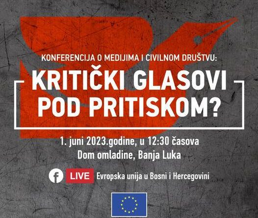 Pridružite nam se u Dom Omladine Banja Luka na konferenciji o slobodi medija i civilnom društvu “Kritički glasovi pod pritiskom?”.