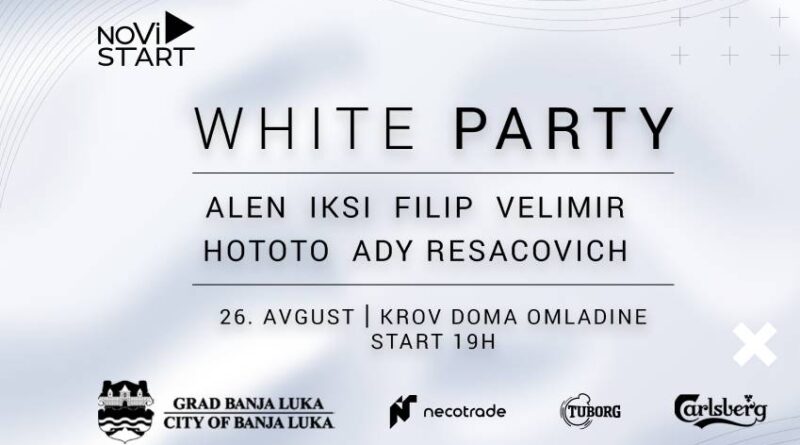 Pridruži se nezaobilaznoj ljetnoj žurci WHITE PARTY u subotu, 26. avgusta sa početkom od 19 časova na krovu Doma omladine Banja Luka.
