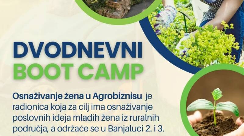 Osnaživanje žena u “Agrobiznisu” je dvodnevni Boot Camp koji ima za cilj da kroz seriju radionica podrži razvoj ženskih poslovnih ideja iz ruralnih područja. Program je osmišljen tako da mladim ženama omogući da steknu nove vještine i znanja koja će doprinijeti njihovom samozapošljavanju.