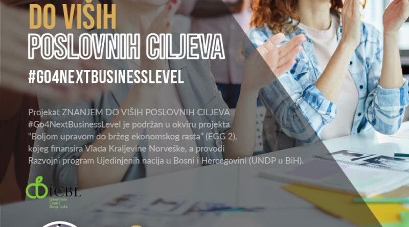 Projekat ZNANJEM DO VIŠIH POSLOVNIH CILJEVA #Go4NextBusinessLevel je podržan u okviru projekta “Boljom upravom do bržeg ekonomskog rasta” (EGG 2), kojeg finansira Vlada Kraljevine Norveške, a provodi Razvojni program Ujedinjenih nacija u Bosni i Hercegovini (UNDP u BiH).