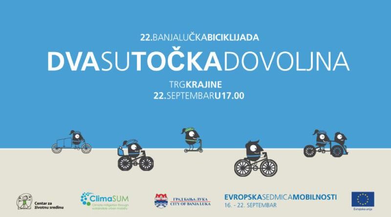 22. banjalučka biciklijada „Dva su točka dovoljna“ obilježava završetak Evropske sedmice mobilnosti (16. – 22. septembar) i Svjetski dan bez automobila (22. septembar), te promoviše održivu urbanu mobilnost i alternativne načine prevoza.