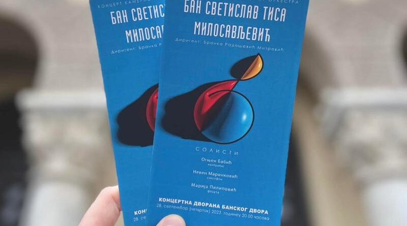 U Koncertnoj dvorani Banskog dvora 28. septembra u 20.00 časova biće održan koncert Kamernog gudačkog orkestra BAN SVETISLAV TISA MILOSAVLJEVIĆ sa gostima, solistima – Ognjen Babić – kontrabas, Neven Marinković – saksofon i Marija Pilipović – flauta, pod dirigentskom palicom Branke Radošević Mitrović.