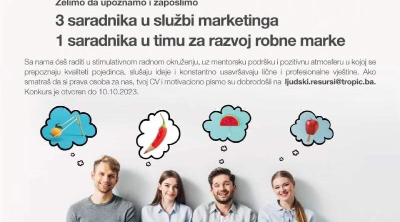U POTRAZI SMO ZA TRI SARADNIKA U SLUŽBI MARKETINGA I JEDNIM SARADNIKOM U TIMU ZA RAZVOJ ROBNE MARKE! 👌