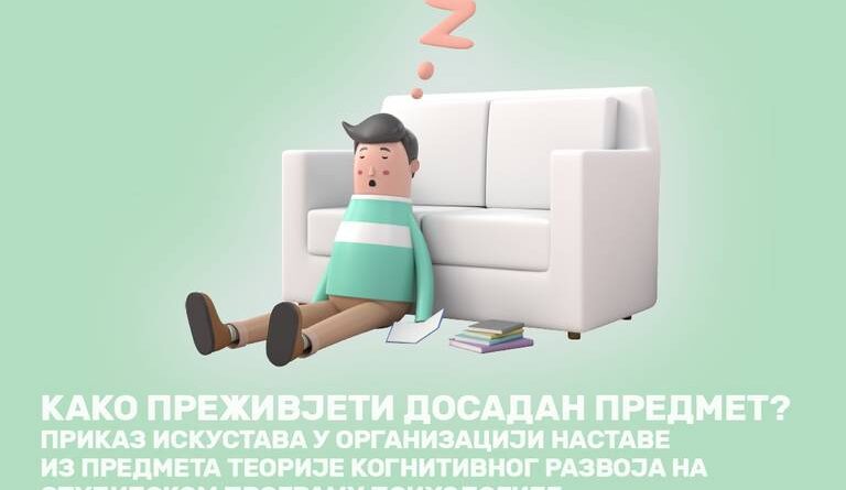 Predavanje prof. dr Aleksandre Hadžić, na temu ,,Kako preživjeti dosadan predmet (Prikaz iskustava u organizaciji nastave iz predmeta Teorije kognitivnog razvoja na Studijskom programu psihologije)ˮ, biće održano 25. oktobra 2023. godine u amfiteatru 203 na Filozofskom fakultetu Univerziteta u Banjoj Luci.