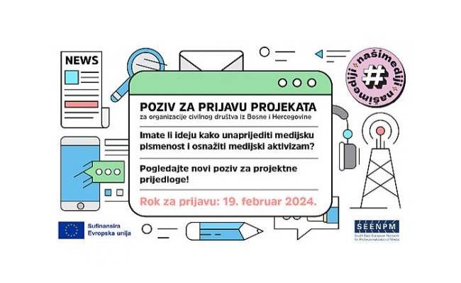 Poziv za podnošenje prijedloga projekata: Podrška organizacijama civilnog društva u razvoju medijske i informacijske pismenosti i medijskog aktivizma