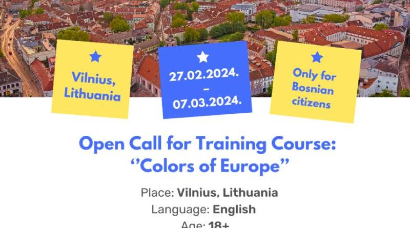 Open call for 3 participants for the Training Course ”Colors of Europe” in Vilnius, Lithuania