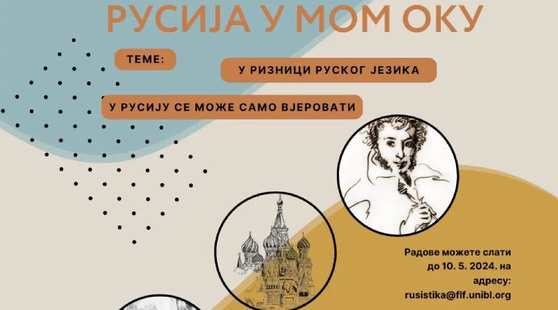 Konkursi Literarni konkurs “Rusija u mom oku” 20/03/202420/03/2024 mladibl literarni konkurs, Rusija u mom oku Peti literarni konkurs “Rusija u mom oku” je zvanično otvoren! Radujemo se vašim radovima! View this post on Instagram A post shared by Руски и српски језик УНИБЛ (@rusistikabl) Preuzeto sa: Instagram @rusistikabl