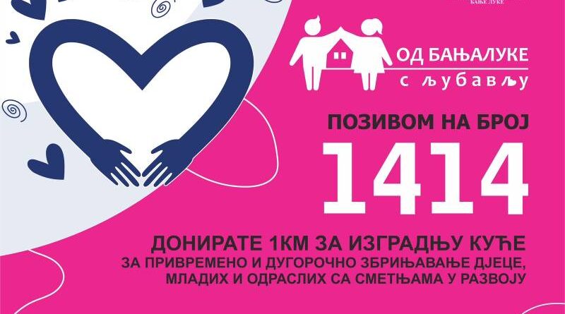 U okviru akcije „Od Banje Luke s ljubavlju“ i tokom aprila možete pozvati humanitarni broj 1414 za sakupljanje novčanih sredstava za izgradnju kuće za privremeno i dugoročno zbrinjavanje djece, mladih i odraslih sa smetnjama u razvoju.