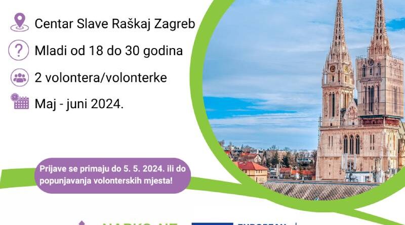 Udruženje za prevenciju ovisnosti NARKO-NE u okviru Evropskih snaga solidarnosti traži dva volontera/volonterke između 18 i 30 godina za volonterski angažman u trajanju od dva mjeseca u Zagrebu, Hrvatska.