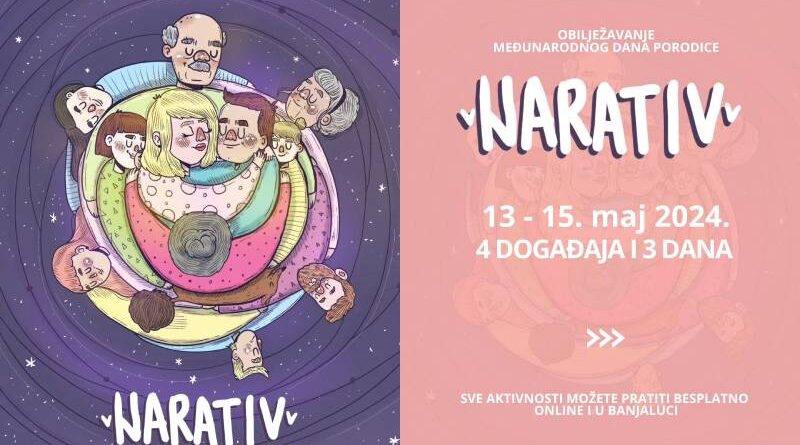 I ove godine organizujemo sjajan besplatan događaj Narativ kojim obilježavamo Međunarodni dan porodice. Ove godine smo pokušali da obradimo teme koje nisu toliko dominantne i popularne u široj javnosti, ali su i te kako važne.