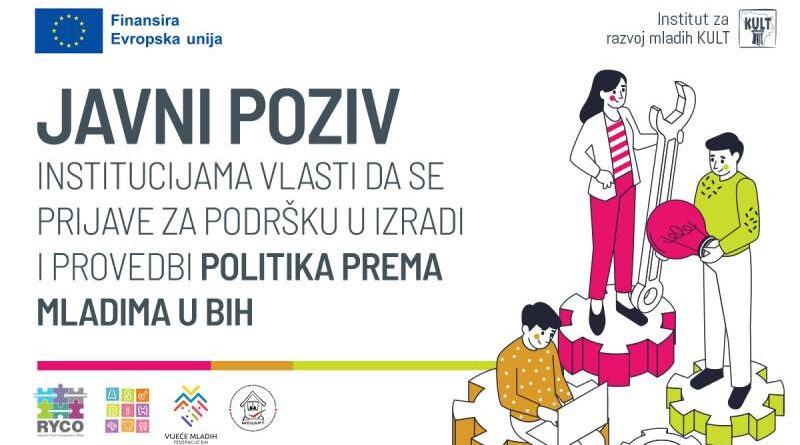 Institut za razvoj mladih KULT, Mreža omladinskih centara za animiranje, razvoj i trening Republike Srpske (M.O.C.A.R.T.) i Vijeće mladih Federacije BiH, pozivaju institucije vlasti u Bosni i Hercegovini da dostave prijavu na Javni poziv za podršku u izradi i provedbi politika prema mladima u BiH.