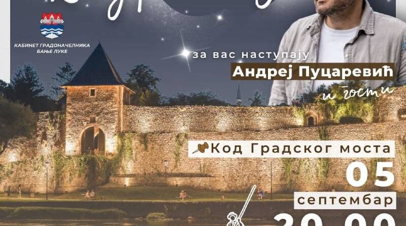 Kao završnica manifestacije “Banjalučko ljeto”, u četvrtak, 5. septembra od 20.00 časova, biće održan koncert na vodi, koji će prirediti Andrej Pucarević i gosti.