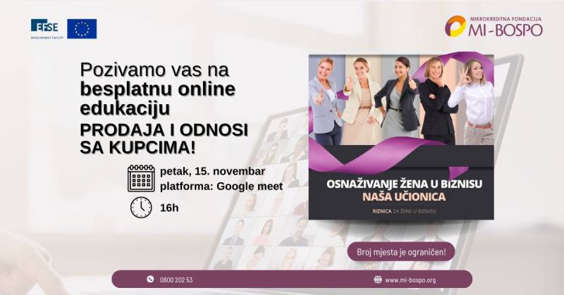 Poziv na besplatnu online edukaciju za žene u biznisu: Prodaja i odnosi sa kupcima!