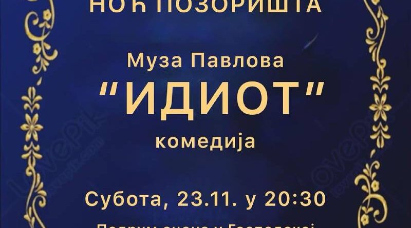Događaji Evropska noć pozorišta: “IDIOT” komedija 19/11/202419/11/2024 mladibl Evropska noć pozorišta, Idiot, komedija, predstava Rezervacije u INBOXEVROPSKA NOĆ POZORIŠTAKarte su besplatne, ali je rezervacija obavezna!Muza Pavlova“IDIOT” – komedijaIgraju: BAH I MEŠAPokrovitelj: Grad Banja Luka View this post on Instagram A post shared by Studentsko pozorište Banjaluka (@studentsko_pozoriste) Preuzeto sa: Instagram