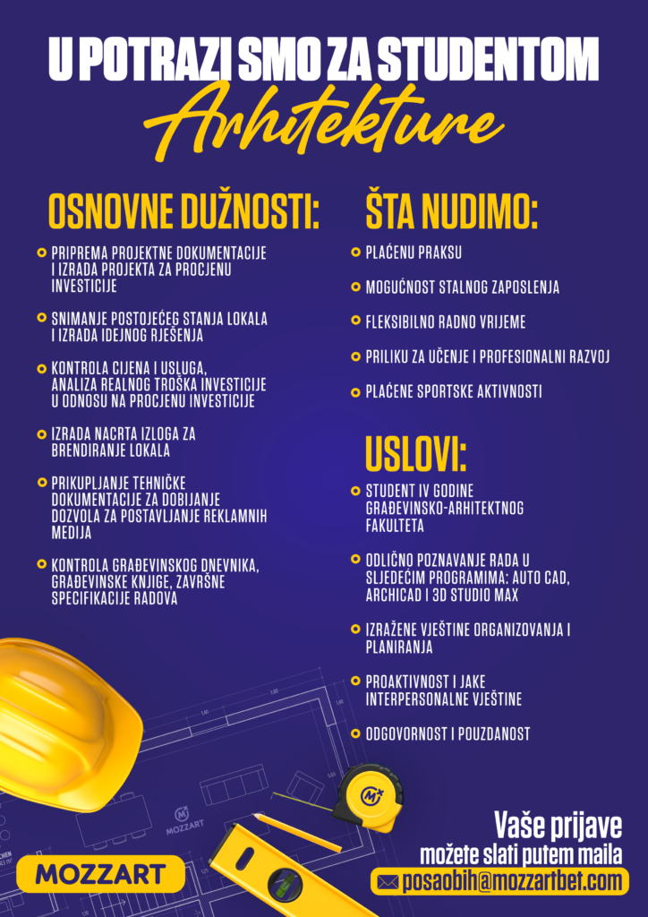 IzdvajamoZapošljavanje Mozzart zapošljava studenta 06/02/202506/02/2025 mladibl arhitektura, Mozzart, Posao, studenti, Zapošljavanje