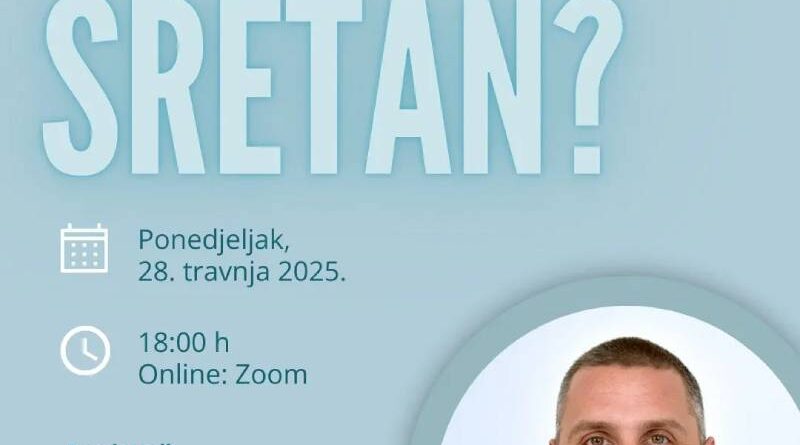 🗣Predavač je Matej Čuljak – psiholog i psihoterapeut, autor knjige “Umijeće sreće”.