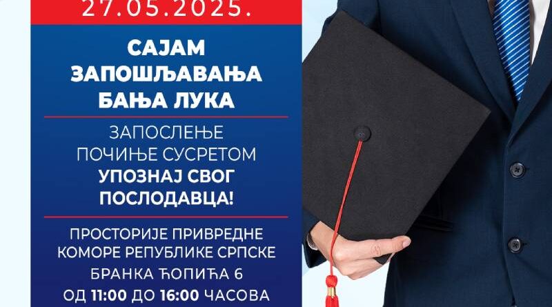 Pridruži se Sajmu zapošljavanja Banja Luka koji organizuju Zavod za zapošljavanje Republike Srpske i Asocijacija poslovnih lidera (ABSL).