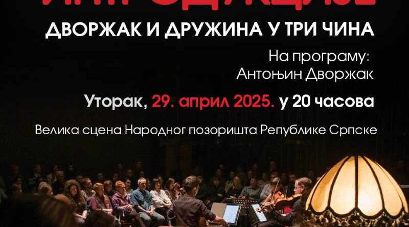 Narodno pozorište Republike Srpske najavljuje novo koncert iz ciklusa Itrodukcije – koncert kamerne muzike pod nazivom „Dvoržak i družina u tri čina“, koji će biti održan 29. aprila u 20.00 časova na Velikoj sceni Narodnog pozorišta Republike Srpske.