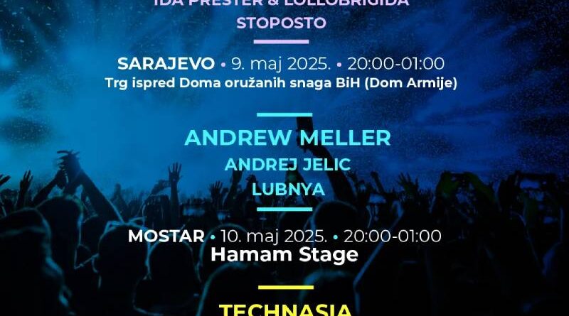 🗓 9. maj 2025. ▶️ Trg ispred Doma oružanih snaga BiH – Dom Armije Sarajevo – Artan Lili, Ida Prester & Lollobrigida, Stoposto