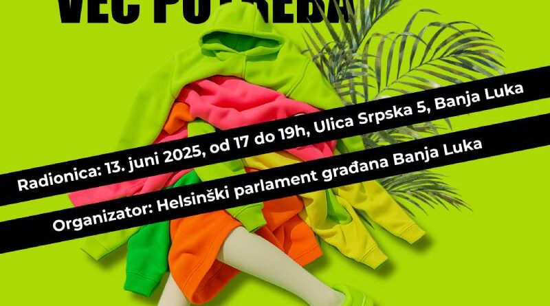 Helsinški parlament građana Banja Luka u aprilu 2025. započeo je rad na projektu „Fashioning A Just Transition” ili u našem prevodu „Krojenje pravedne tranzicije“, kao jedna od partnerskih organizacija međunarodne mreže „Clean Clothes Campaign“ koja se zalaže za poboljšanje uslova rada i prava radnica i radnika u globalnoj modnoj i tekstilnoj industriji, uz podršku Evropske unije.