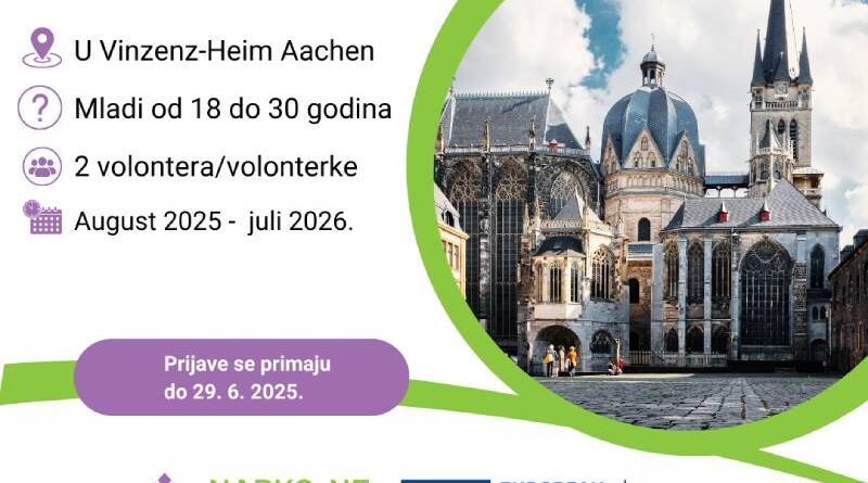Udruženje za prevenciju ovisnosti NARKO-NE poziva mlade od 18 do 30 godina iz BiH za volontiranje u Aachenu (Njemačka) u okviru programa Evropske snage solidarnosti!