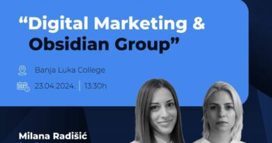 Read More▶️ Obsidian Digital Group će za studente Visoke škole “Banja Luka College” 23. aprila u 13.30 održati radionicu iz oblasti digitalnog