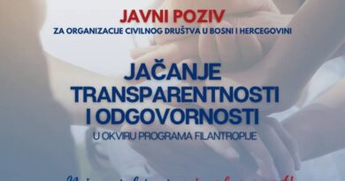 Javni poziv za organizacije civilnog društva (udruženja i fondacije) u Bosni i Hercegovini za jačanje transparentnosti i odgovornosti u okviru programa filantropije