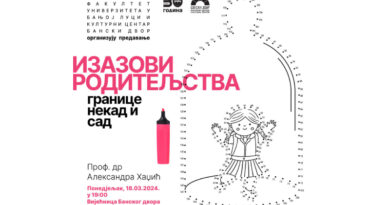 Redovna profesorka Filozofskog fakulteta Univerziteta u Banjoj Luci dr Aleksandra Hadžić održaće 18. marta 2024. godine, u 19 časova u