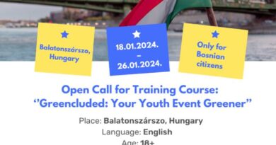 Open call for Training Course ‘’Greencluded: Your Youth Event Greener” in Hungary