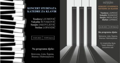 Read MoreStudenti na Katedri za klavir, Teodora LJumović, Vukašin Šuvaković, Sanjin Jakovljević i Stefan Lopandić, predstaviće se publici u okviru dva
