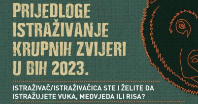 Otvoren poziv za projektne prijedloge: Istraživanje krupnih zvijeri u BiH