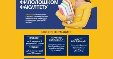 Read MoreOtvoren je poziv za pohađanje besplatnih kurseva stranih jezika na Filološkom fakultetu Univerziteta u Banjoj Luci. Riječ je o semestralnim