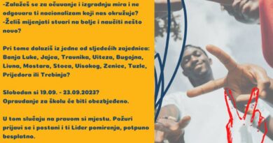 Javni poziv za učesnike treninga Lideri pomirenja 2.0