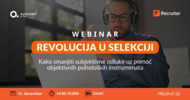 Read MoreAlphabet Group & Recruiter BH vas pozivaju na besplatan webinar „Revolucija u selekciji: Kako smanjiti subjektivne odluke uz pomoć objektivnih psiholoških