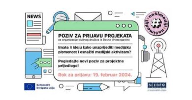 Read MoreFondacija za razvoj medija i civilnog društva “Mediacentar” traži prijedloge projekata koji imaju za cilj podizanje kapaciteta organizacija civilnog društva