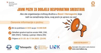 CARE Balkans i Poduzetnički centar sa sjedištem u Mostaru, raspisali su javni poziv za dodjelu grantova organizacijama civilnog društva koje