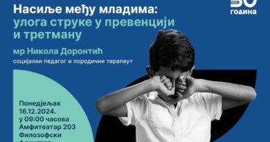 Read MoreFilozofski fakultet Univerziteta u Banjoj Luci organizuje predavanje na temu: “Nasilje među mladima: uloga struke u prevenciji i tretmanu”. Predavanje