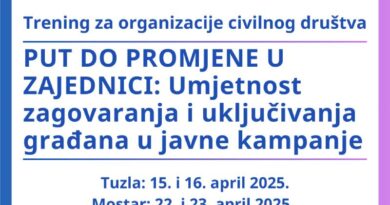 Read MoreTrening je namijenjen predstavnicima lokalnih nevladinih organizacija iz cijele BiH kojima su u fokusu rada monitoring javnih bužeta i zagovaranje,