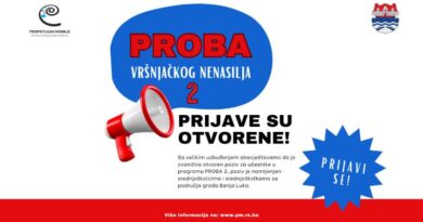 Read MorePROBA vršnjačkog nenasilja – Programa obuke ambasadora vršnjačkog nenasilja je projekat koji realizuje Institut Perpetuum Mobile a finansira Град Бања